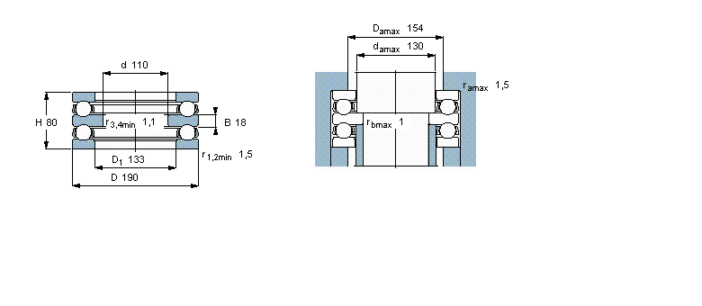| 主要数据尺寸 | 基本负荷额定值 | 疲劳负荷限值 | 最小负荷系数 | 额定速度 | 体积 | 型号 | |||||