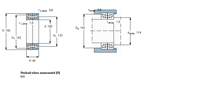 | 双向, 精密,高精度轴承, BTM..A design, 30°, preload A | |||||||||||